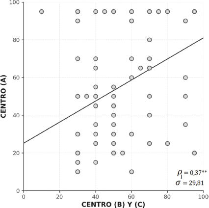 Zenker et al. (2013) analizaron el grado de concordancia entre tres centros que emitieron diagnósticos de hipoacusia basados en los PEATC. Los resultados evidenciaron una baja correlación en la clasificación de los casos entre los distintos centros, con un índice de correlación intraclase (ρ = 0.37), como se muestra en la Figura 4. Este valor indica una concordancia baja entre los evaluadores, lo que sugiere una alta variabilidad diagnóstica. En términos clínicos, esto significa que la interpretación de los PEATC no fue consistente entre los centros, lo que podría llevar a diferencias en la identificación de la pérdida auditiva dependiendo del lugar donde se realice la prueba. En este estudio, la baja concordancia estuvo asociada con una ausencia de validación concurrente entre pruebas electrofisiológicas y conductuales, lo que derivó en una tasa elevada de errores diagnósticos.