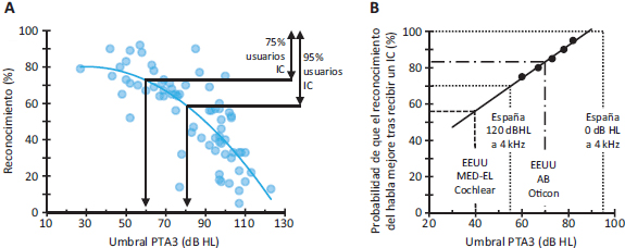 En 1985, la Food and Drug Administration (FDA) de Estados Unidos aprobó el uso de ICs en adultos con pérdida auditiva profunda (>90 dB HL) bilateral postlocutiva. En España, el IC fue aprobado como tratamiento de la hipoacusia profunda por la Agencia de Evaluación de Tecnologías Sanitarias (Instituto de Salud Carlos III) en 1995. Desde entonces, los criterios de indicación han evolucionado de tal forma que cada vez un mayor número de personas se consideran candidatas a IC (revisado por Park et al., 2021; Zwolan y Basura, 2021). No obstante, no hay unanimidad entre países con respecto a estos criterios.